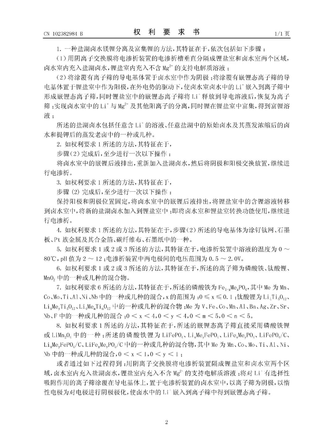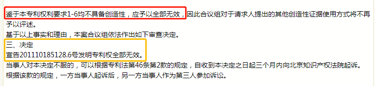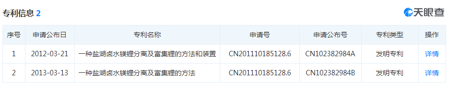 关键是专利申请号为:CN102382984B,专利名称为:一种盐湖卤水镁锂分离及富集锂的方法,这件专利被无效了。